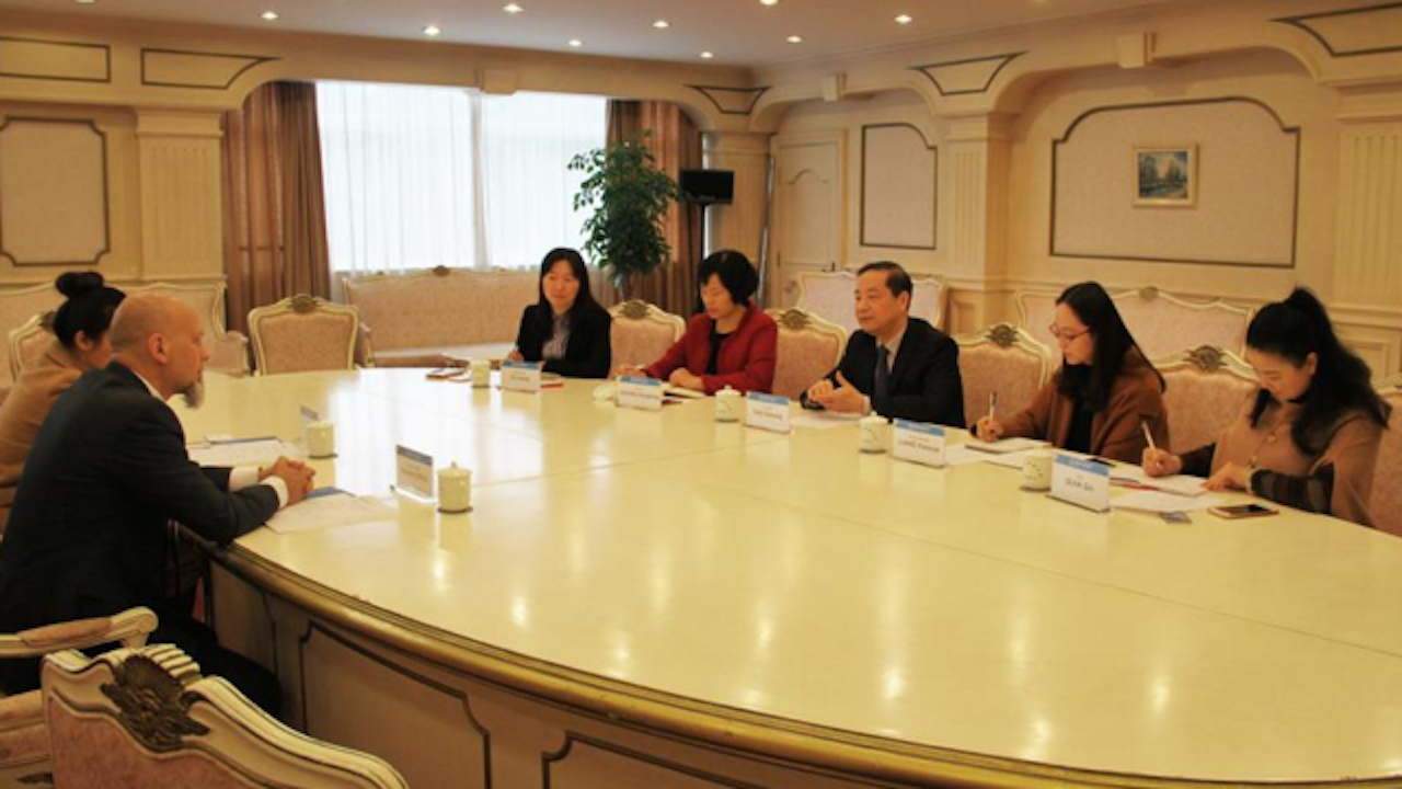 Meeting attendees included Professer Zhang Hongling, director of SISU’s Office of International Cooperation and Exchange; Professor Xu Hong, Deputy Dean of SISU’s School of Russian and Eurasian Studies.