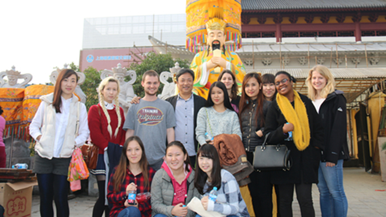group of international students at Shanghai International Studies University (SISU) joined the parade of Sanlintang Chenghuangshen Temple in the Pudong New Area of Shanghai in mid-November. All of them are scholarship holders of the Confucius Institute in SISU.